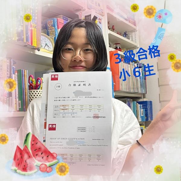一次試験のライティングに苦労したり、二次試験の面接で緊張したりと苦労しましたが、お祖父様と面接の練習をして見事合格です。中学受験の勉強もしながらよく頑張りました。