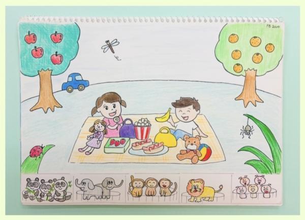 私がイラストを描き、80歳を過ぎた母が「リハビリになるから」と色を塗ってくれました。