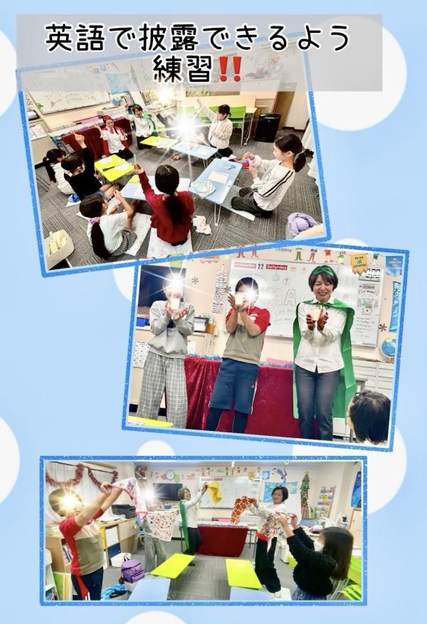 出来上がった手品道具を使って英語で披露できるよう練習しました。