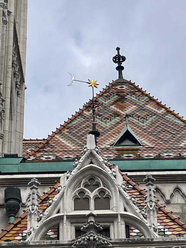 屋根はカラフルなかわいい形のレンガが重なり合っています