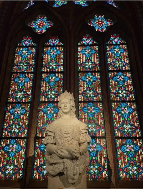 中は美しいステンドグラスと