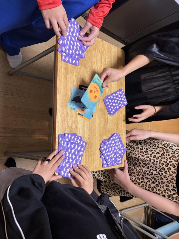 今年一番盛り上がったゲームは、SNAPと射的でした。SNAPは、反射神経のゲームです。絵を下に向けたカードを順番にひっくり返して行き、同じカードが2枚重なったら「SNAP」と言って真ん中のカードをもらっていきます。最後までカードを持っていたプレイヤーの勝ちです。画像のクラスでは、運動神経の良い2人の一騎打ちとなりました。
