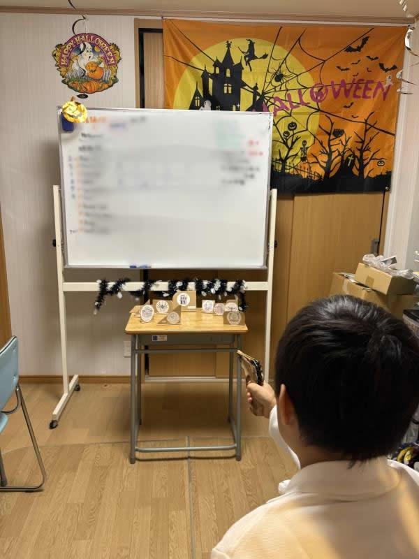 今年もゲームをしなかった中学生以上の生徒達にも大量のお菓子を配り、全員大満足のハロウィンレッスンとなりました。