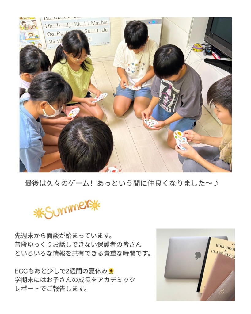 夏休み前、アカデミックレポートも準備中です。