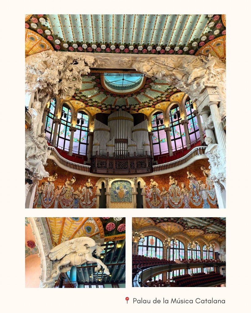 !カタルーニャ音楽堂…太陽の光に照らされて、ステンドグラスがまぶしく輝いていました。