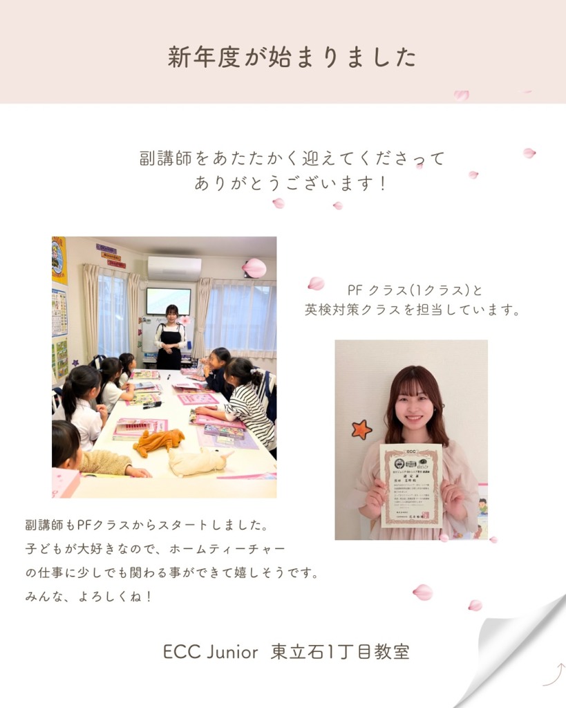 忙しい大学生活と両立しながら、週に1回、英検®対策クラスとPFクラスを担当しています。私は一緒にチームティーチングでレッスンをし、その姿を近くで見守ってきました。