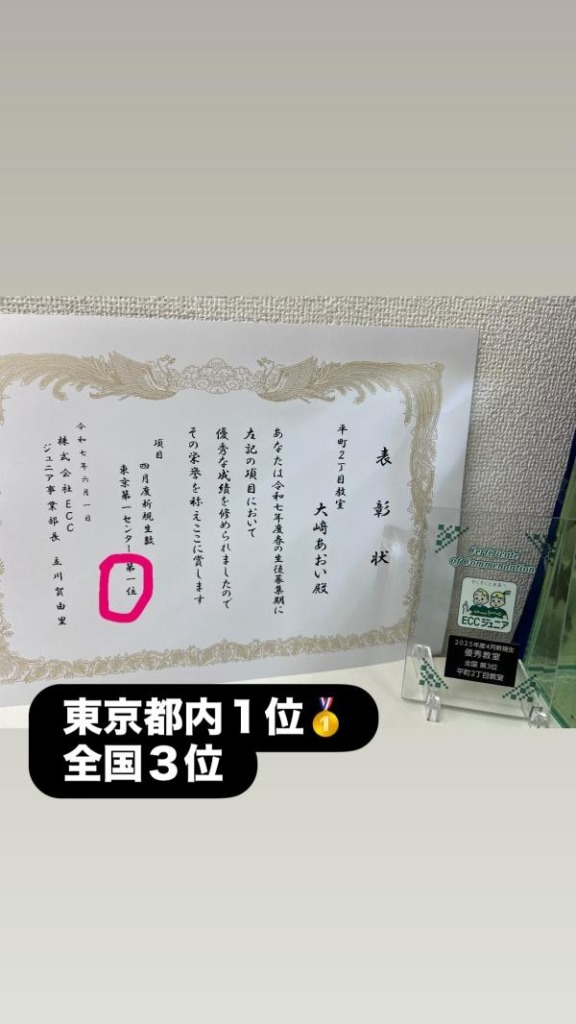 ECCジュニア都内1位は大変嬉しく思います。