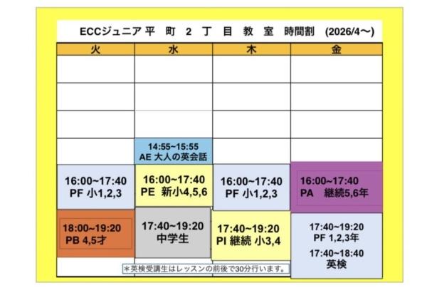 ECCジュニア平町2丁目教室では、2026年度の新規生徒を募集中です!