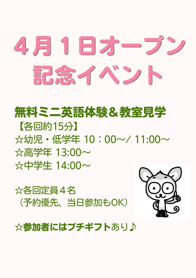無料体験レッスンの前に、少し英語に触れてみたいお子様や、教室や講師の雰囲気を見てみたい親子様など、是非お気軽にお問い合わせください。