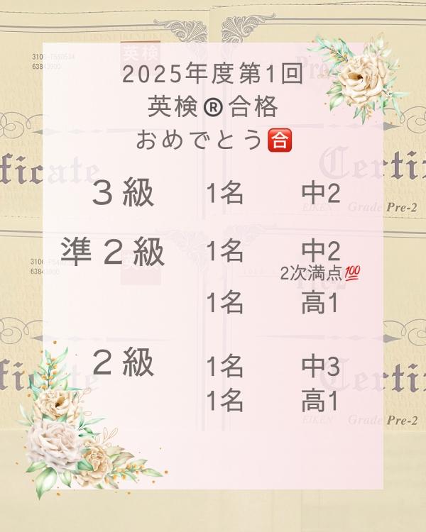 2025年度第1回合格者(6/28)