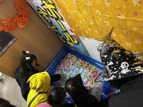ネイティブイベントではネイティブ講師によるゲームや歌などのアクティビティを5回に分けて実施いたしました。また、フリーエリアではお祭り形式で、射的、輪投げ、スーパーボールすくい、クラフトなどの楽しいイベントを実施いたしました。”Trick or Treat!”といってお菓子をもらったり、ゲームの賞品をたくさんゲットしていました。皆さんの満面の笑顔が忘れられないイベントになりました。ありがとうございました!!