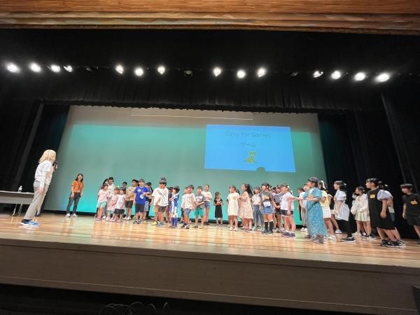 最後はみんなで舞台に上がり、ネイティブ先生と一緒にゲームタイム♫