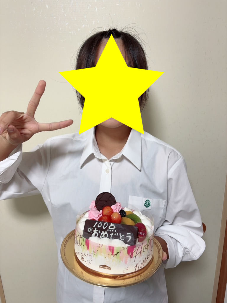 ECCジュニア桂公田町教室では、学校の定期テストで満点を取るとケーキのプレゼントがあります♪