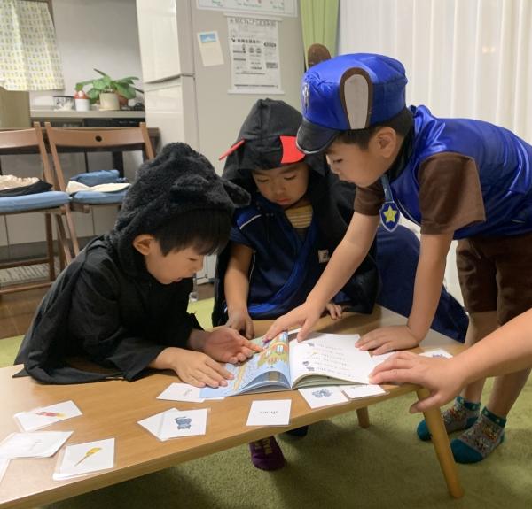 文字のところは私が読んで、イラストの所にくると私が何も言わなくても絵を見て子どもたちが「Witch!」「Chair!」「Broom!」と叫んでくれました。