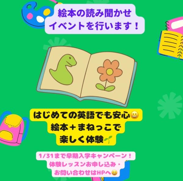 2/22(日)11:00より、幼児〜小学校低学年向けの英語絵本読み聞かせイベントを開催します♪