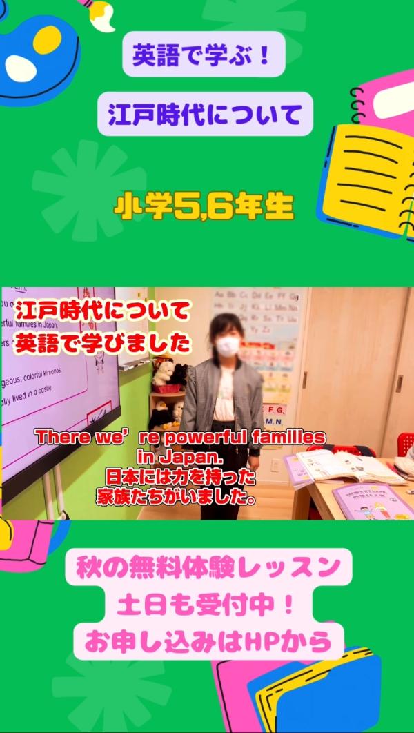江戸時代について英語で学び、サムライ、忍者、姫から選んで説明文を暗唱発表しました♪