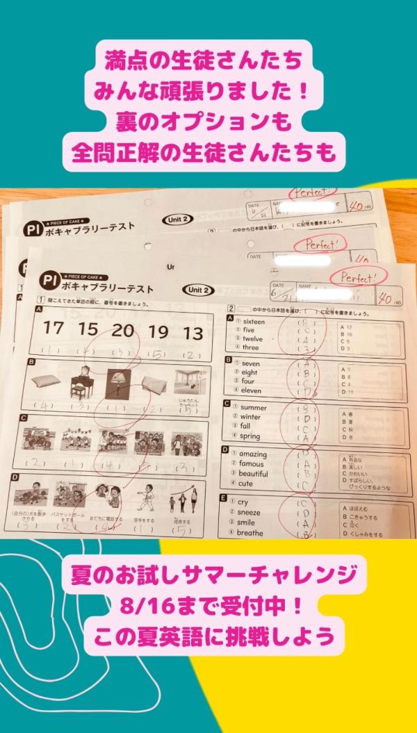 小学3,4年生経験者クラス。ユニットごとのボキャブラリーテスト。40点満点。頑張りました!