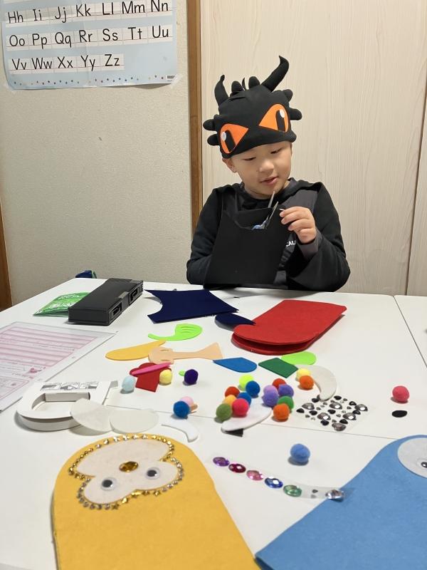怖いモンスターのパペット作りがテーマだったけど、ずいぶん可愛いパペットができました
