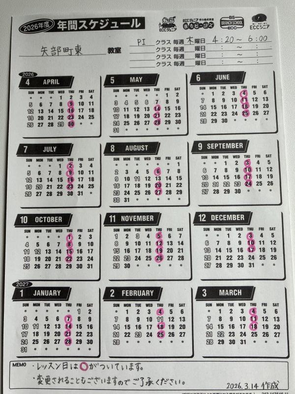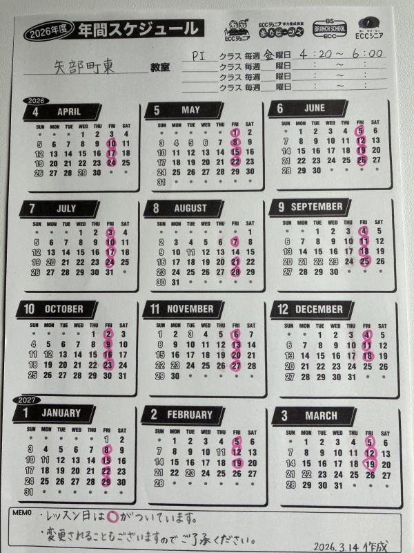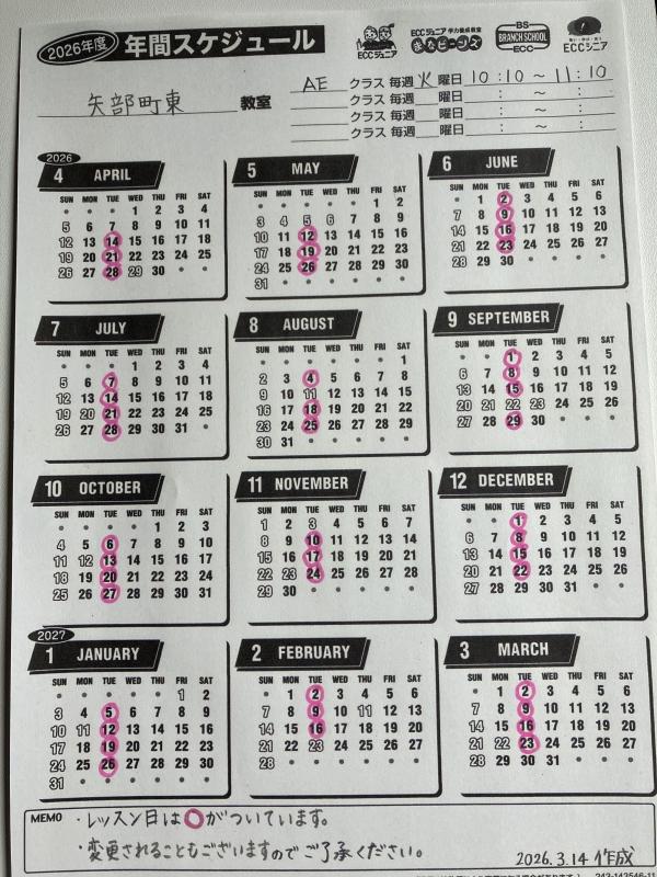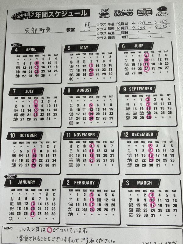 2026年度レッスンスケジュール