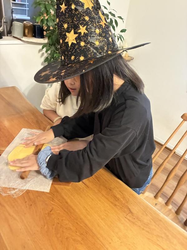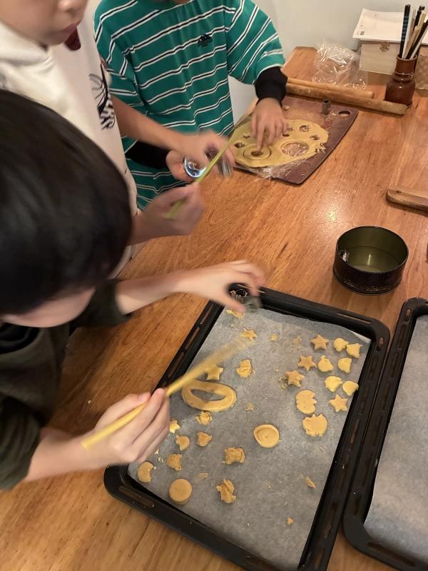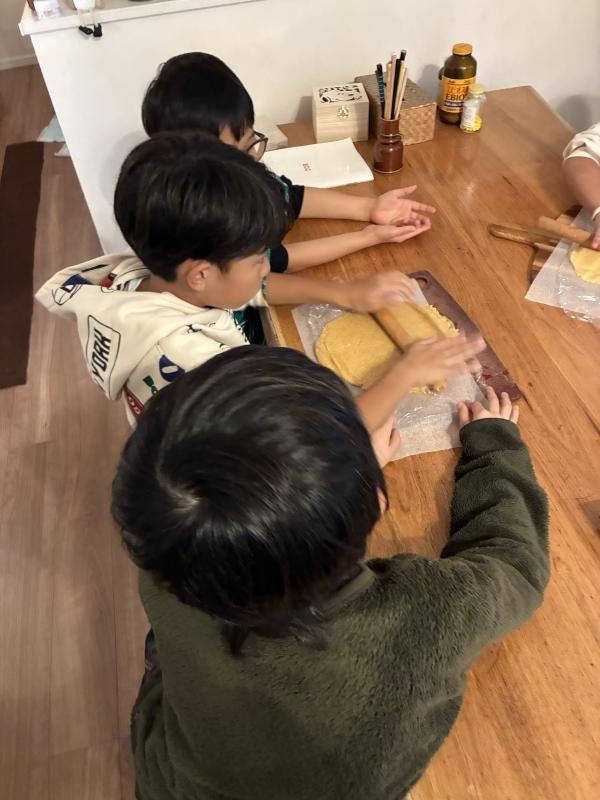 3.4年生クラスではハロウィンクッキーを作りました。毎年、お家にTrick or treat!と言ってお菓子をもらいに行っていたみんな、今年は手づくりクッキーをあげられたかな?型抜きの貸し借りを英語でしながら、楽しくたくさんクッキーを作ることができました。