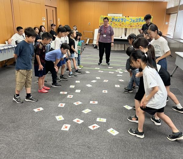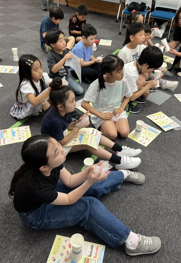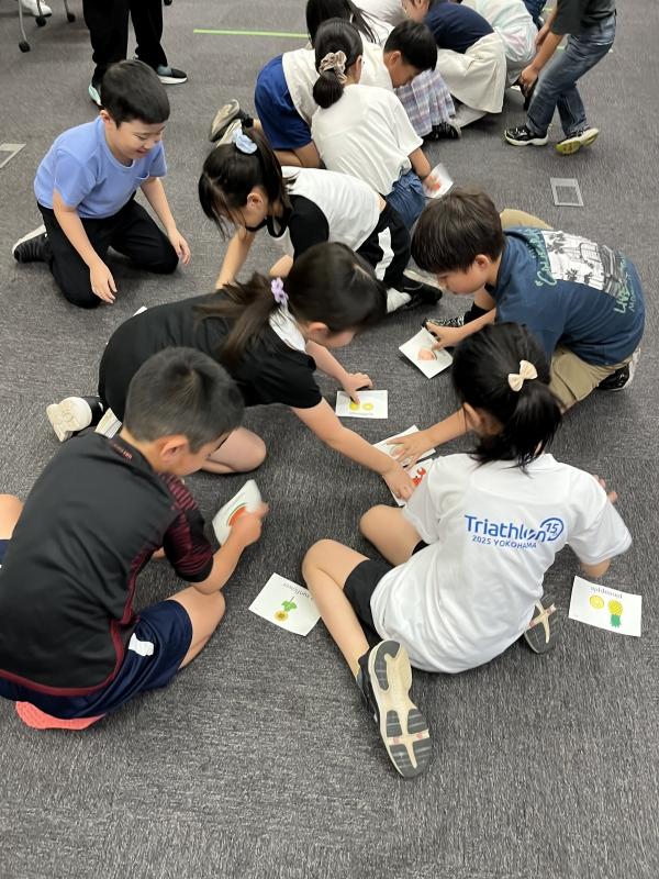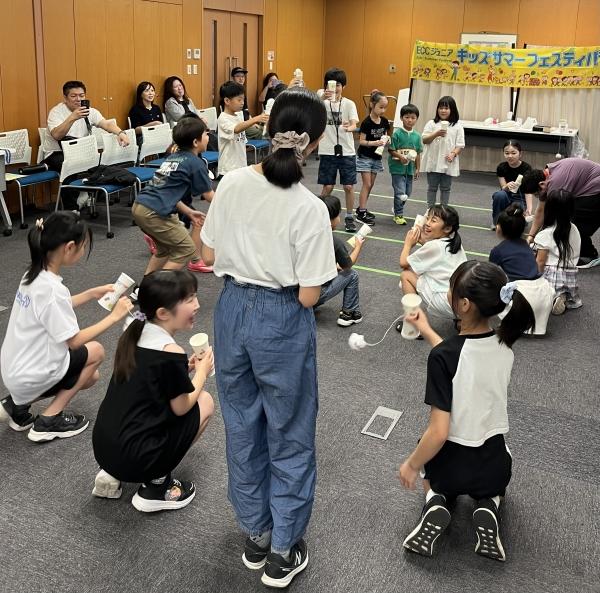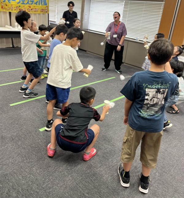 元気いっぱいのネイティブ講師に、始めのうちは押され気味のシャイな生徒さん達でしたが、徐々に場の空気にも慣れ、体を動かしながらのアクティビティを思いっきり楽しみ、手作りケン玉で遊んで、あっという間の50分間でした。