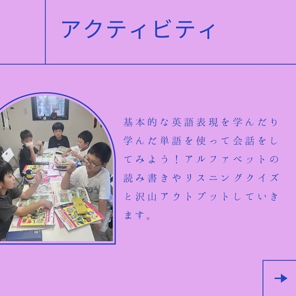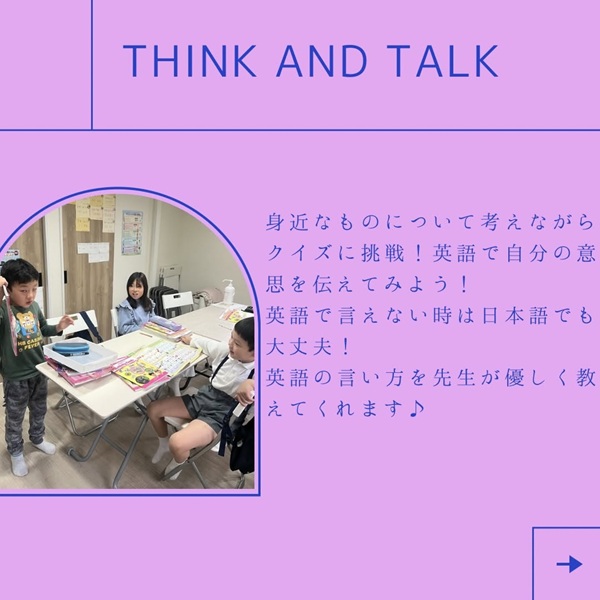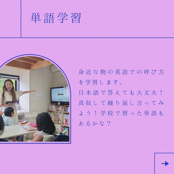 学んだ単語を使って会話をしてみよう!アルファベットの読み書きやリスニングクイズと沢山アウトプットしていきます。