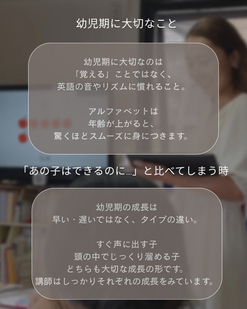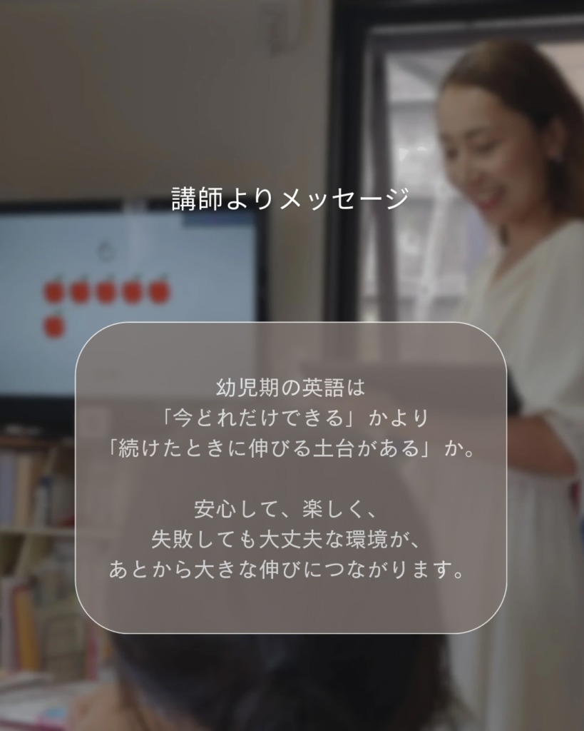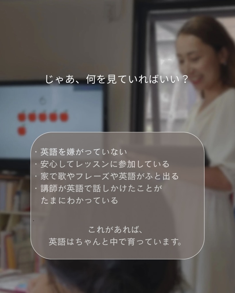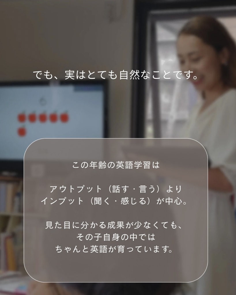 見た目に分かる成果が少なくても、その子自身の中ではちゃんと英語が育っています。