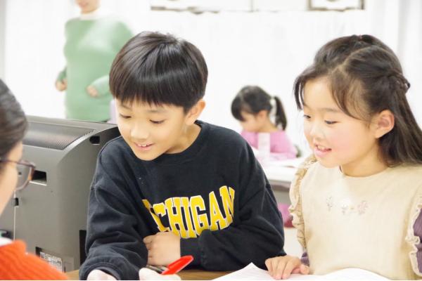 低学年クラスは、ライティングの時間もワイワイにぎやか!