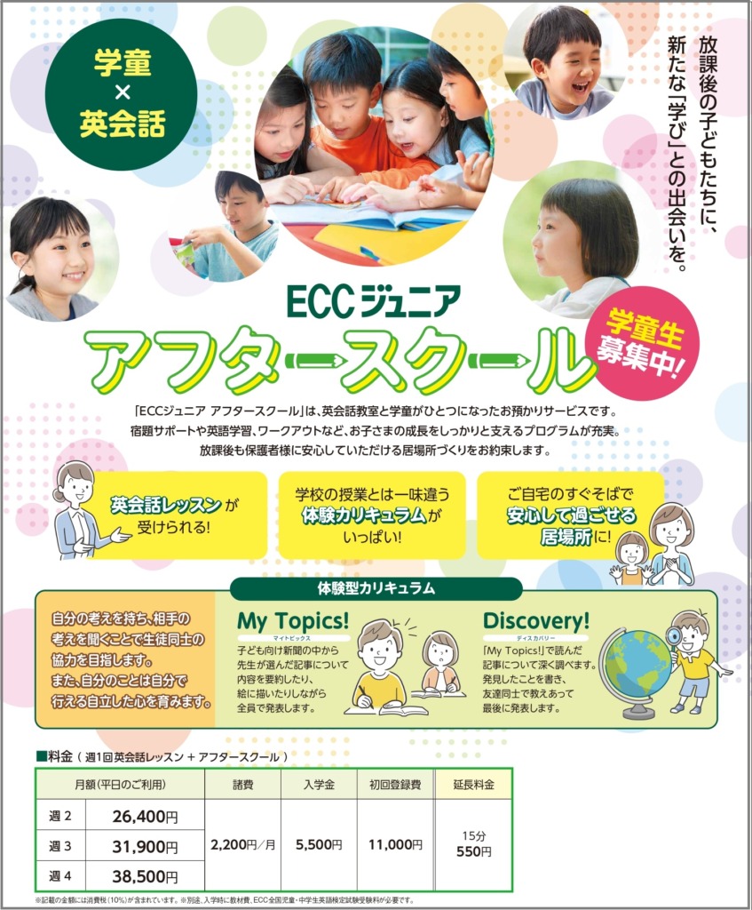 内容:ECCジュニアのレッスン(スーパーラーニングコース)+ 放課後のお預かり