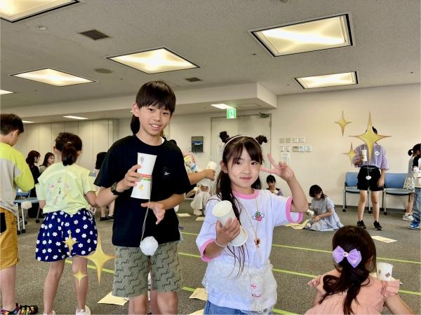 優しい雰囲気のエミリー先生と英語を使って一緒にアクティビティをしたり、けん玉作りを楽しみました。