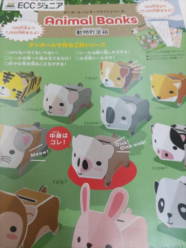 ・当教室にて。簡単な英会話をしながら工作(どうぶつ貯金箱)をします。保護者の方同伴でお願いいたします。