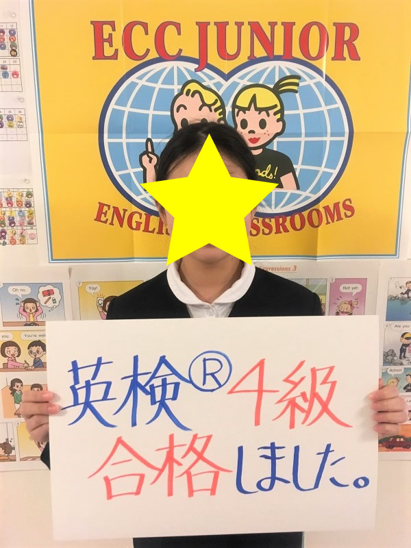 小2から当教室に通っている小立野小学校6年生Rさんは英検®4級に合格です。将来の通訳者目指して、これからも英語学習を頑張ってね。