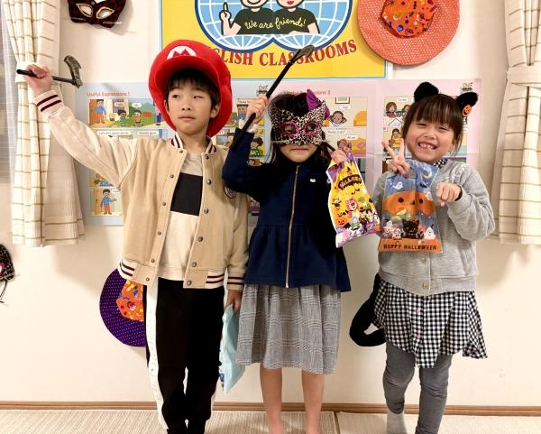 10月は各クラスでハロウィンパーティーをしました。おやつをもらって、ハイポーズ!