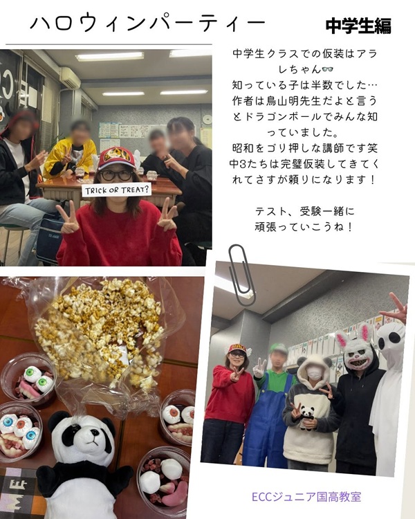 中学生は各クラス毎に国高教室にてハロウィンパーティーを行いました。