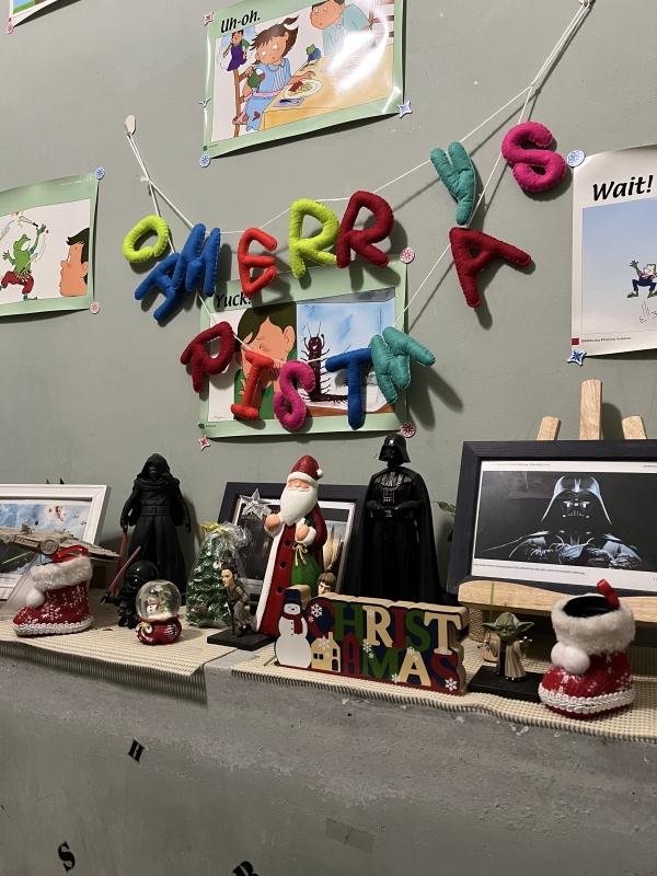 急に寒くなってきました。教室でも暖房が欠かせなくなりました。12月に入り、早速クリスマスの飾り付けをしました。