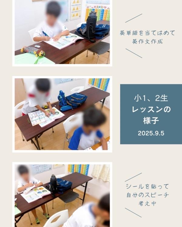 小1、2生クラス 自分なりのスピーチが考えていき、文でも書いていきました