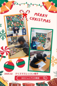 小1、2年生コースでは、通常レッスンを短縮してクリスマス絵さがしやクリスマス絵カード探ししたりして楽しみました。