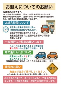 ★お子様の送迎に関しまして、お願い事がございます。お便り、メールにてお知らせしておりますのでご確認、シェアをお願いいたします。