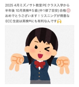 2019 ECCジュニア暗誦大会県大会 中1 第3位、中3 第3位と第1位、グランプリ受賞!2022 中2 3位入賞、2023 中2 一位と二位、中1 四位と六位に全員入賞♪2024 中2 一位、中3 五位、2025 中3 銀賞入賞。暗誦大会17回連続 出場者全員上位入賞!伝える大切さを指導しています。