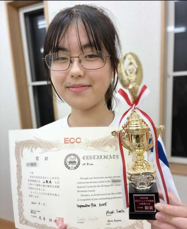 2025 ECC中学英語暗誦大会県大会中3 銀賞受賞 ♪