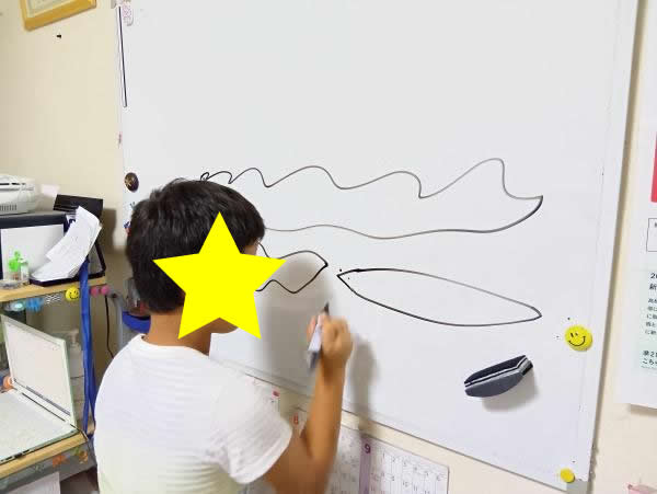 英語の指示に従ってお絵描きしたり消したり…「Erase the big 7.」バッチリです!