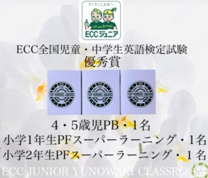 ECC ジュニア湯の脇教室から7名の生徒さん達が100点満点優秀賞!