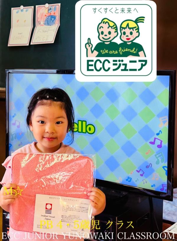 ありがとうございました。ECCオリジナルデザイン好きなグッズを1つ選んでね!M☆ちゃん今治タオルハンカチピンク。