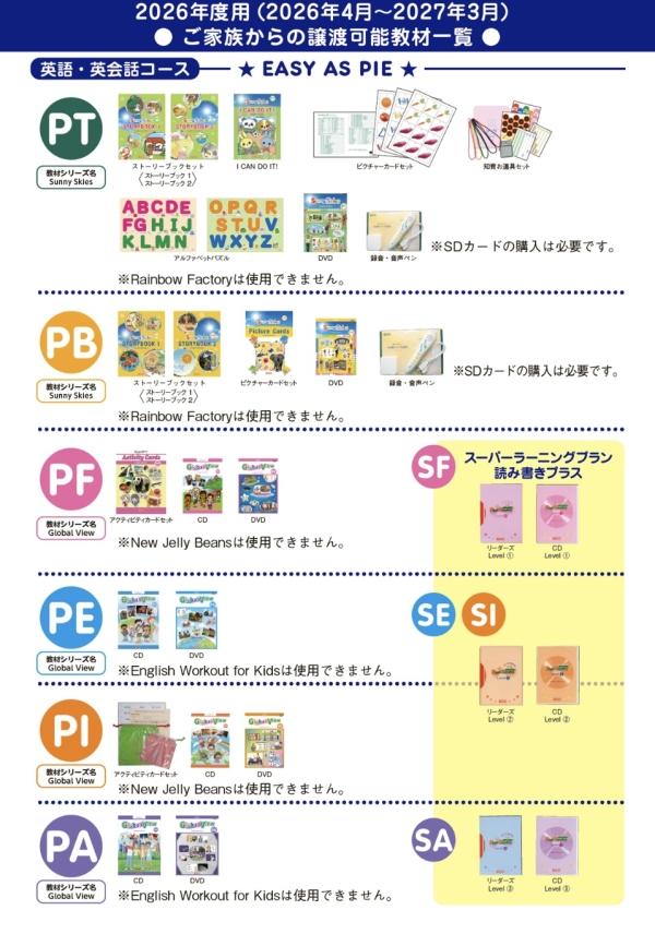 ・小学3年生〜6年生にスーパーラーニング、中学生に文法プラスをおすすめしております。スーパーラーニング、文法プラスが受講可能クラスの方は、ポータルサイトにプラスしたお値段表示をしております。今年はつけないという方は、ご連絡ください。レギュラーレッスンのみの金額を再反映させていただきます。