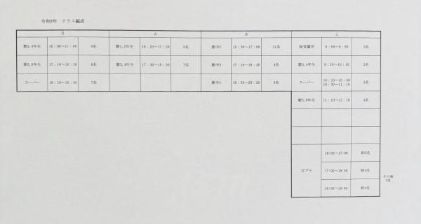 今現在のクラス人数表を下記に掲載いたします。(3月までに人数等変更になる可能性があります。)