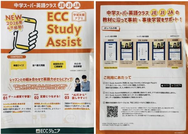 生徒さんにもお話しておりますが、個人懇談会の際に配布した封筒内のチラシの「アプリ教材」について再連絡です。(チラシ画像最後に添付します。)