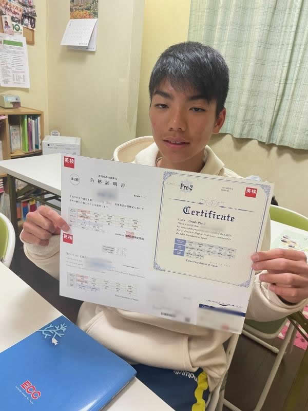 中学1年生のF君とT君。初めての準2級チャレンジでしたが、一発合格しました!!