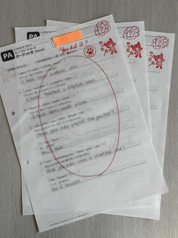 PA(上級レベル、小5・6年生)クラスのウィークリーテスト、2週続けて全員満点でした!この調子で頑張ってほしいです!