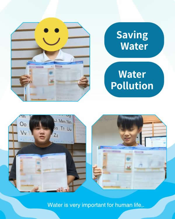 PAクラス(小学校高学年)水の節約と水質汚染について文を作り暗誦発表!このユニットでは水の大切さを学習しました