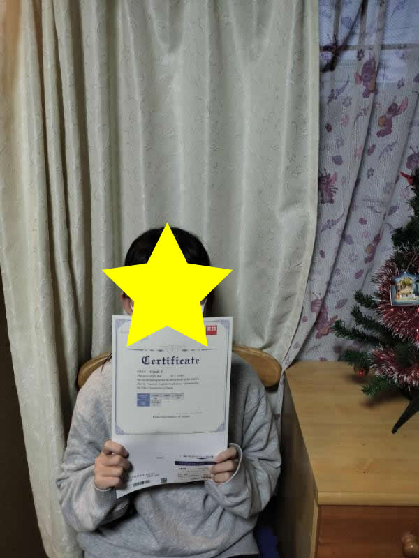今回は、中学3年のMちゃん、初めての2級挑戦で、準1級も合格できそうな成績で合格をしました。